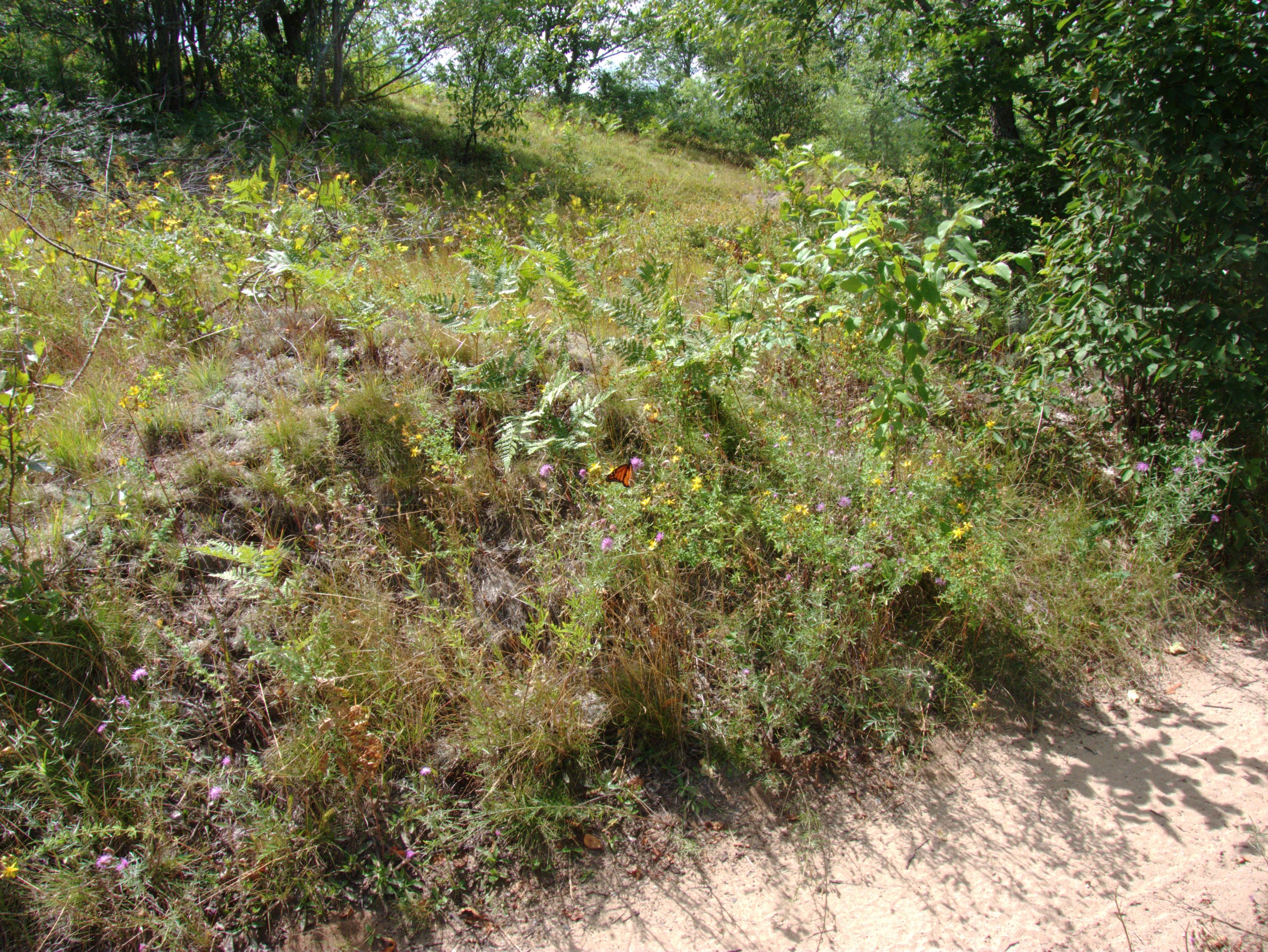 Despite the continued heat and rain the previous day, I decided to do a cross country hike through the wet grass. I headed north from the Cabin following the creek. I made it to the Loop and followed it to the old beaver dam. The dam has been disappearing year after year. It is now almost completely gone/hidden. The pond it had created it much smaller and crossing the creek is getting harder and harder since there is so little structure left to walk on. I kept along to the north up to the Sucker river. I did not find a good crossing place and the heat was annoying so I headed back to the Cabin.