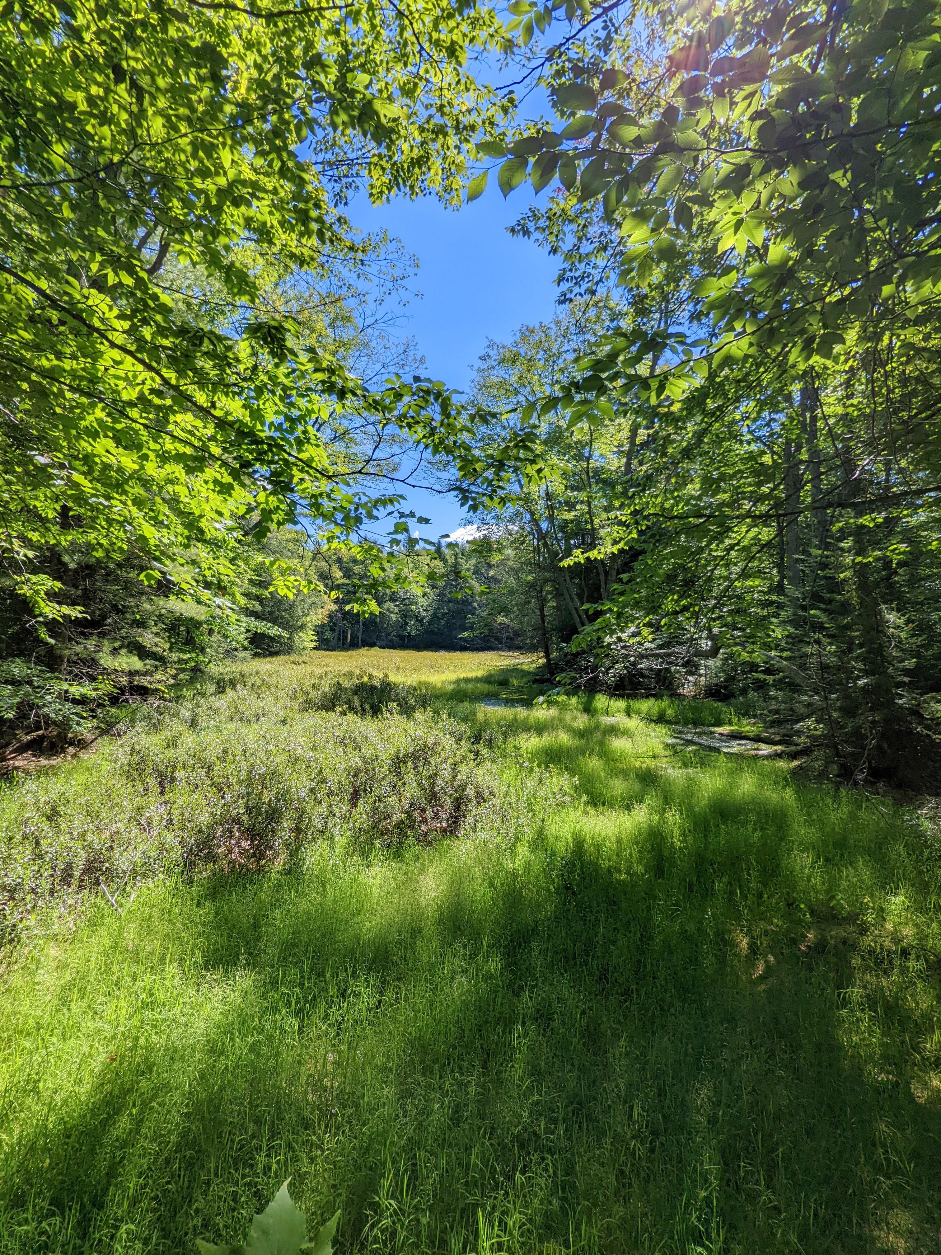 I also took the opportunity to do more off trail hiking along the Sucker river. It is more wooded here so it is easier to hike close to the river. I followed a small feeder branch almost to its beginning before crossing it to the bigger branch. Here I found a nice looking pool that might be good for swimming. The river bottom is rather silty and the bank is rather steep, but it may still work.