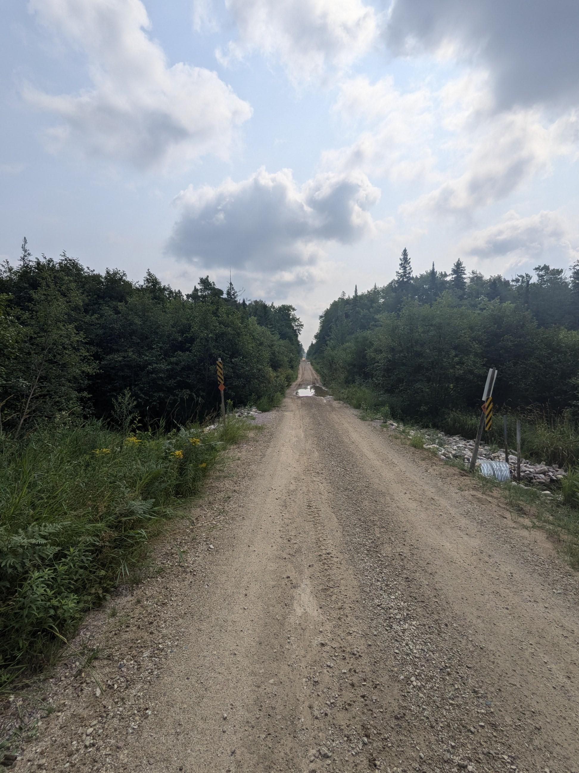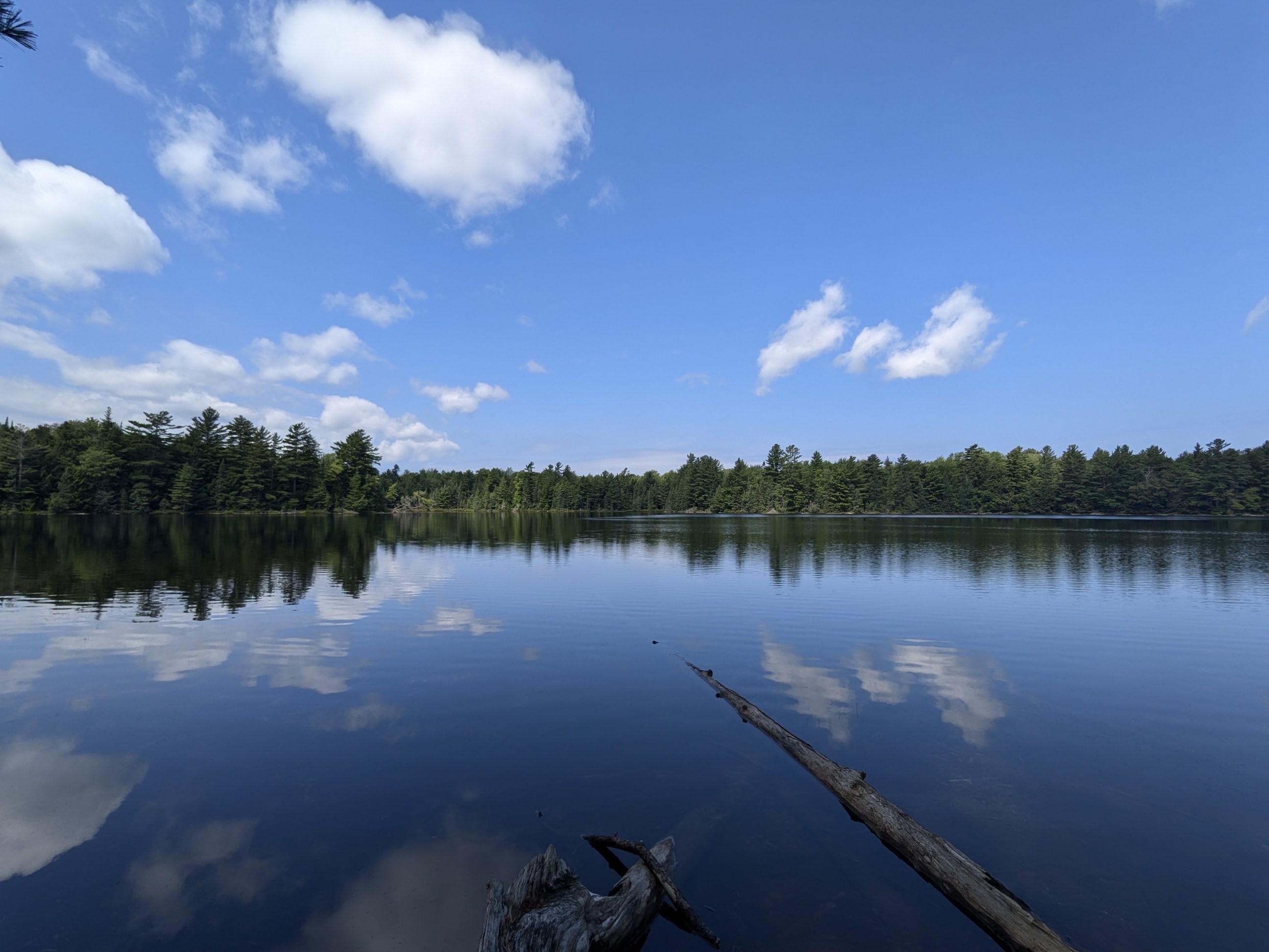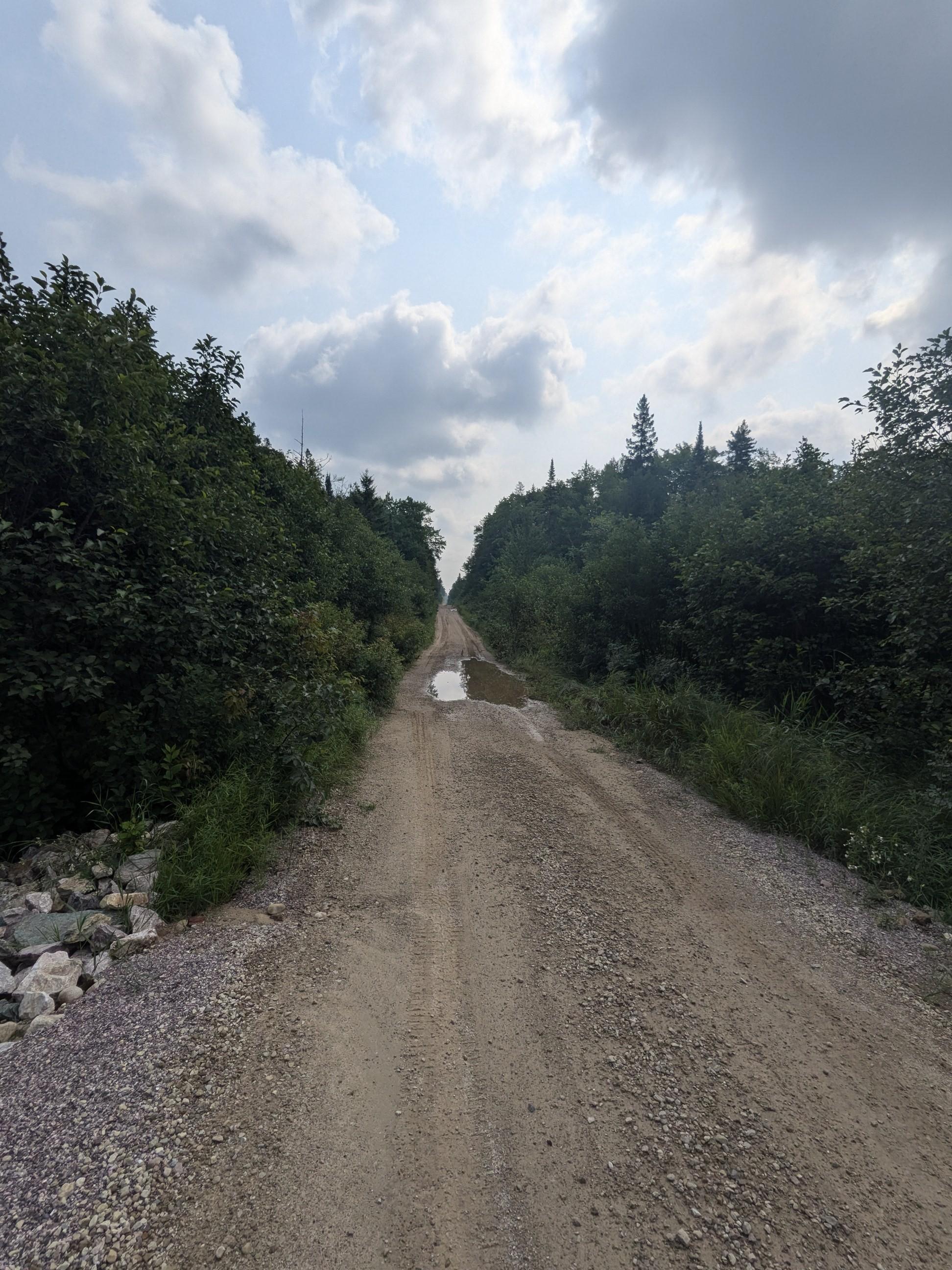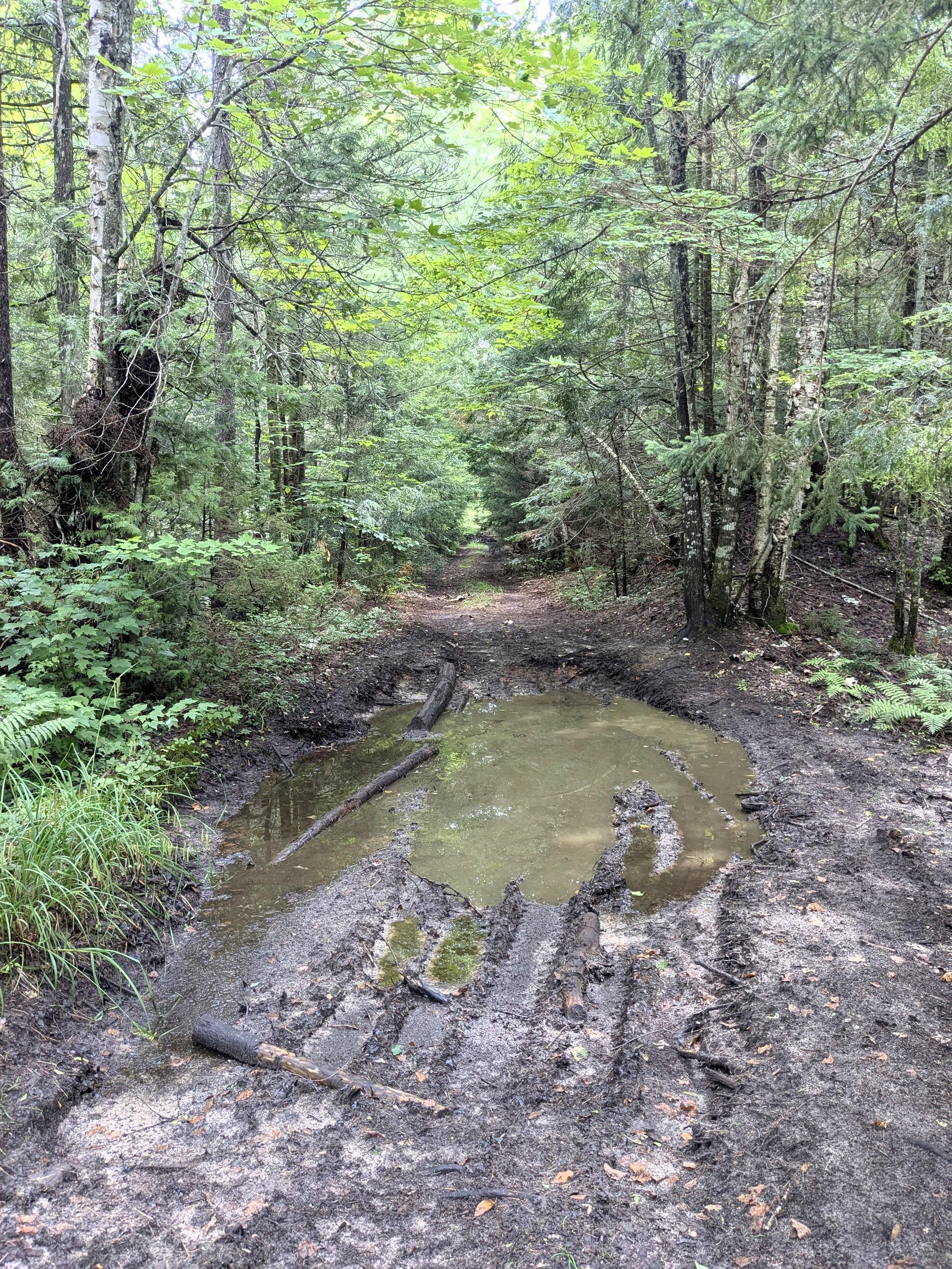 A good bit further north are a few camps on the east side of the Sucker River. The grand scheme was to visit them and find a way across the river. This quickly became absurd. I was not prepared for an all day hike; I made it about 1/2 way up this road before turning back. I did find another East-West road to add to the map. I also hiked what was claimed to be a road on the map. It is hard to tell it was even a path. Without the map open and in hand I would not have been able to notice there was even the semblance of a trail to follow. It supposedly comes out right at the intersection where we normally turn east for the lakes. Even so, it was mostly traversable on foot and is the one place I came across that had blueberries available for picking. With the heat and the bugs I only stopped for a small handful but it was nice. In the end this potential for a long hike only resulted in a 9.5 mile trek.
