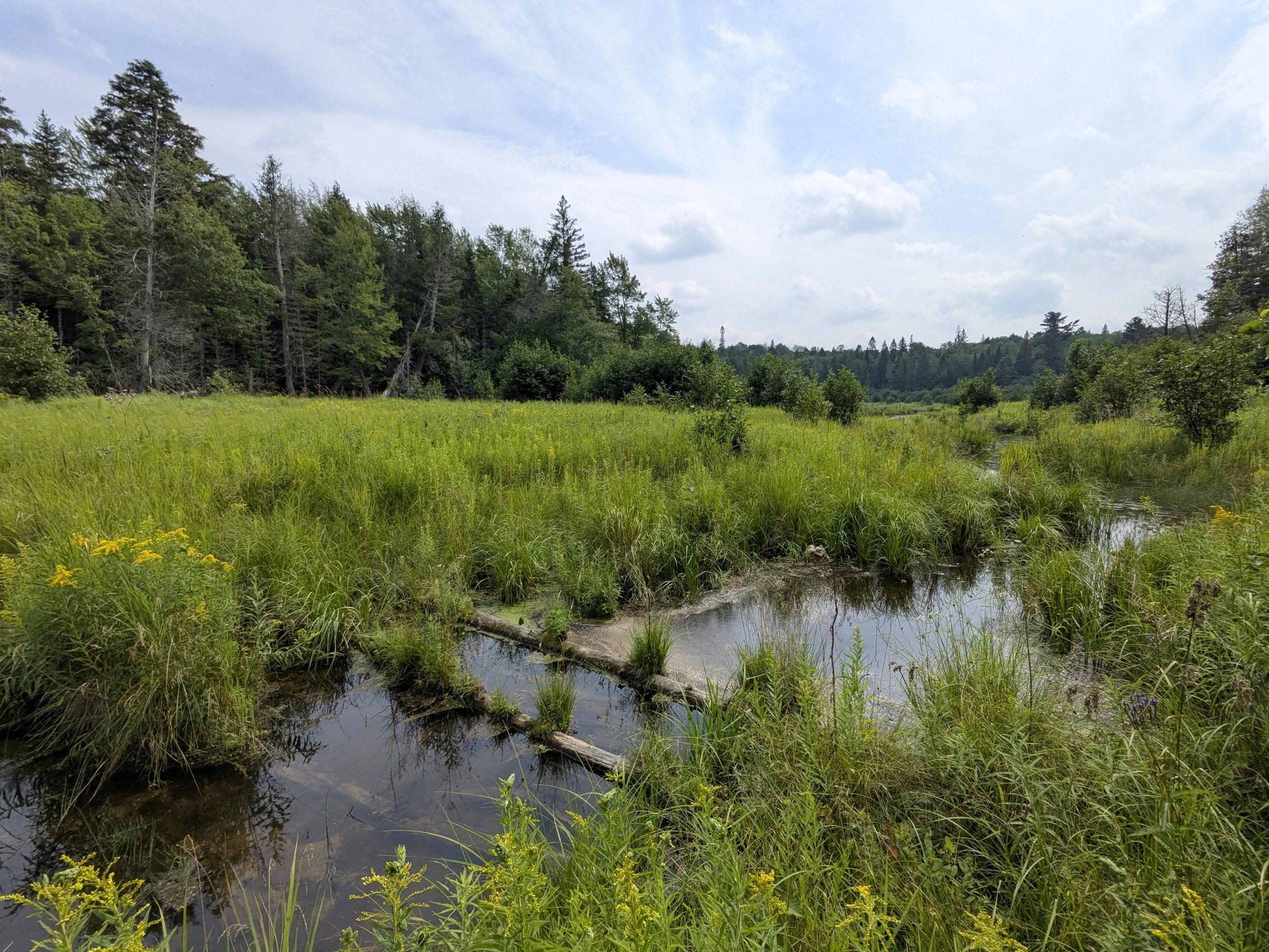 From here I headed east to Delton camp on Harvey Creek with the Radisson Riders sign. Following a path and then cutting through grasslands, I came to a place where it looks like there might have been a foot bridge at one time. It had logs that would still be crossable when the water is not too high. This is potentially useful knowledge....