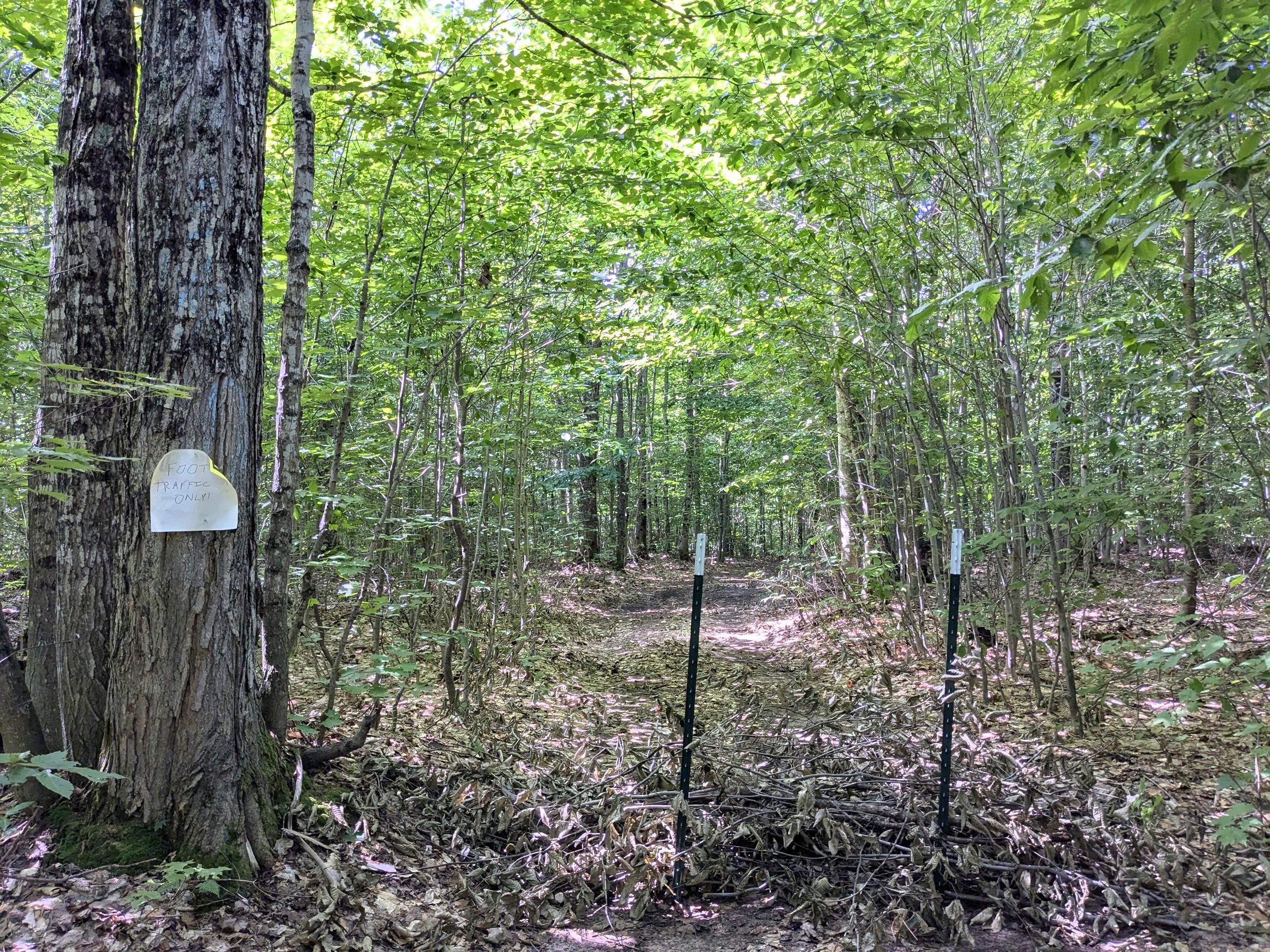 Another "cooler" day so I hiked west of Old Seney. I again cut through the woods to the south trails, hiked past the old trucks, then cut through Camp Oscar to get to Sigan Camp Road. The realty sign was gone and when I hiked to Sitka Lake there was a crude barrier on the road and a sign allowing foot traffic only to the lake. Presumably this was at the boundary of the property and maybe it means it has been purchased. (It appears to have been purchased by the "Larry Bell Trust" and may include two 1 mile square sections.) There were no other signs of changes.