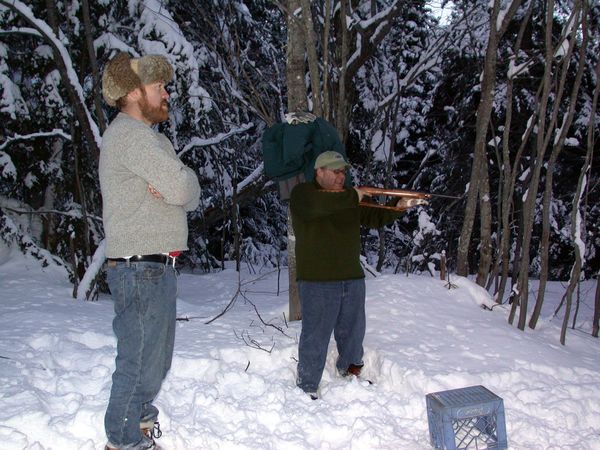 Vittoria and I again went out skiing. Again we went to the Lucky Buck (and a little past it). Bill and Jon stayed behind and shot the gun. I cannot say they were target shooting because that would imply they were actually hitting something. They did go through a box of shells.