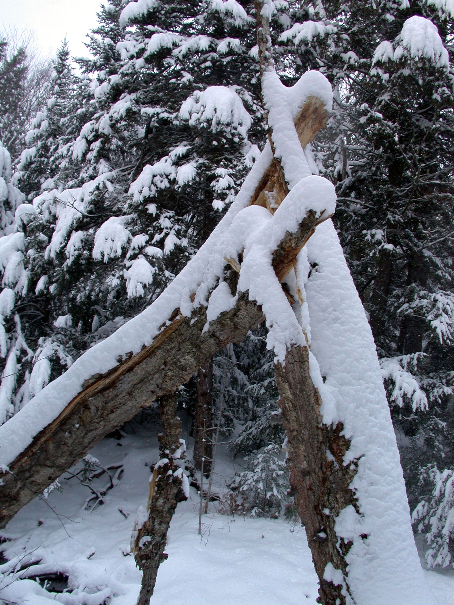 Vittoria and I agreed that we would go out on excursions twice a day, every day. We used to do this (typically with major excursions) and tried to reinstate the tradition. The "morning" (it was before noon when we got up and had breakfast) started late so our first trip was the loop on snowshoes. There was enough snow that using the snowshoes was necessary. The trees were covered with snow and it was a nice trip.