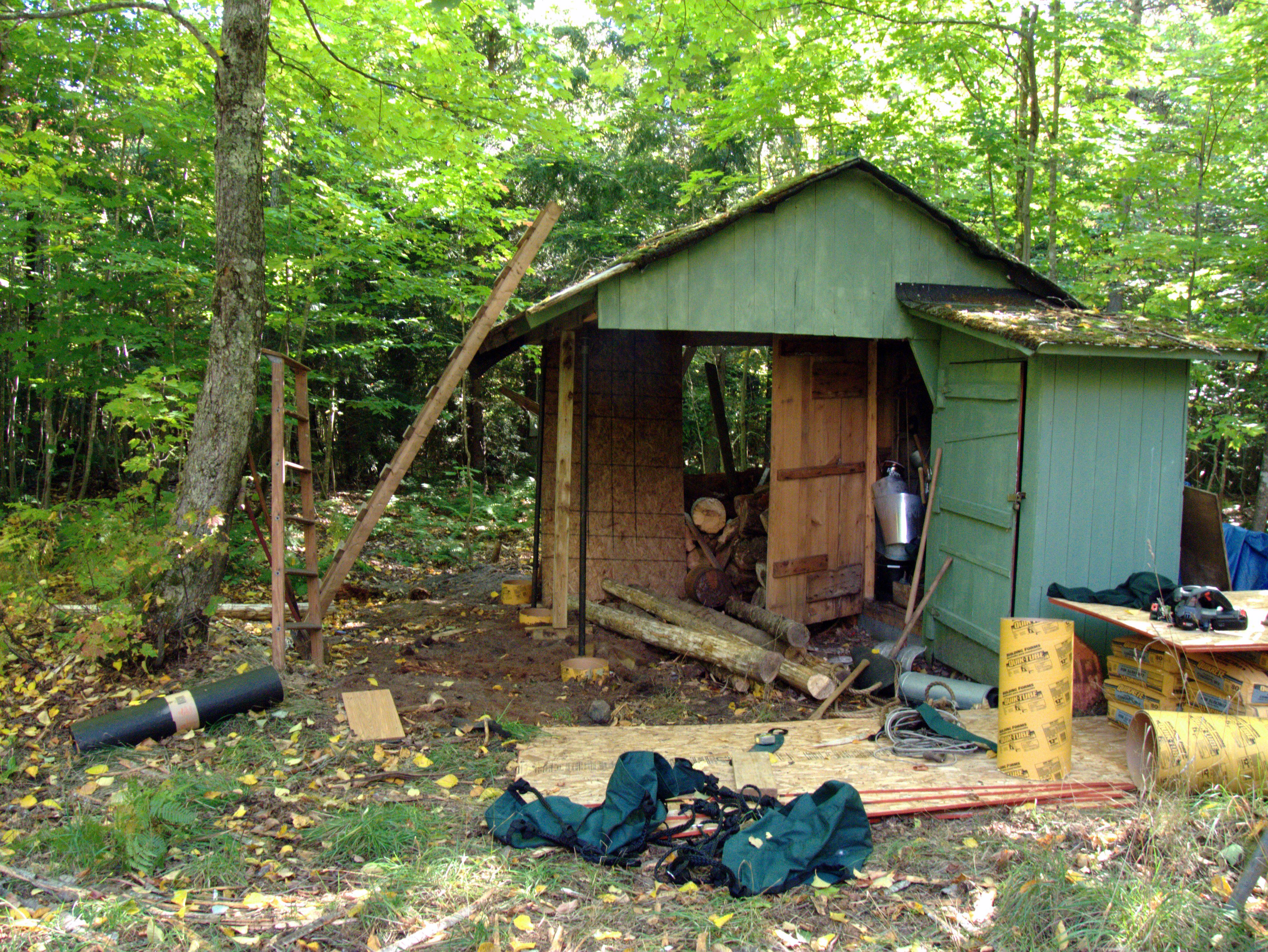 I claimed the newly supported wood shed for the night. Bill was gracious enough to let me sleep there (he actually has slept there on a number of the trips). With the walls of wood around me it was a nice place to sleep, though with the rain and wind I did have to put some plastic over the open end.