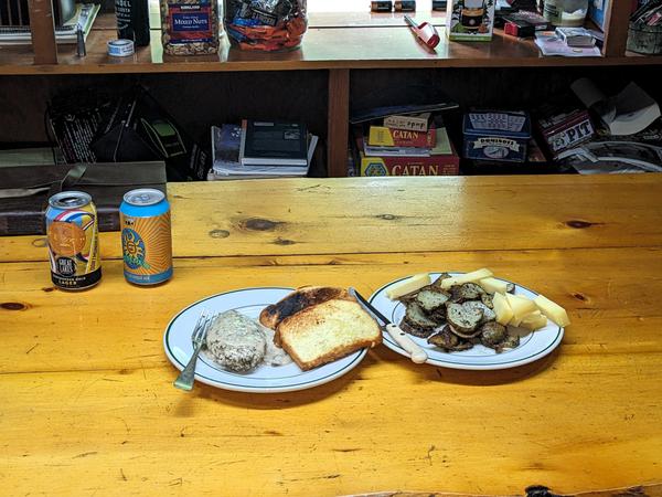 For dinner I baked some chicken breasts and fried some potatoes. Yes, I used a meat thermometer to ensure the chicken was fully cooked. I have no idea what temperature the oven gets to and the door likes to come open, so you can never be sure when using it. Lighting is always a challenge in the kitchen, particularly by the stove. Both day and night it is rather dark. I experimented with hanging one of the string of LED lights I had brought up last Gentlemen's weekend. It was incredible, I deem it a tremendous success and something that needs to become permanent. Exactly how remains to be determined (no, not like the experimental setup), but I think anyone doing any serious cooking would enjoy being able to see everything clearly. I left this in place and used it the entire trip.