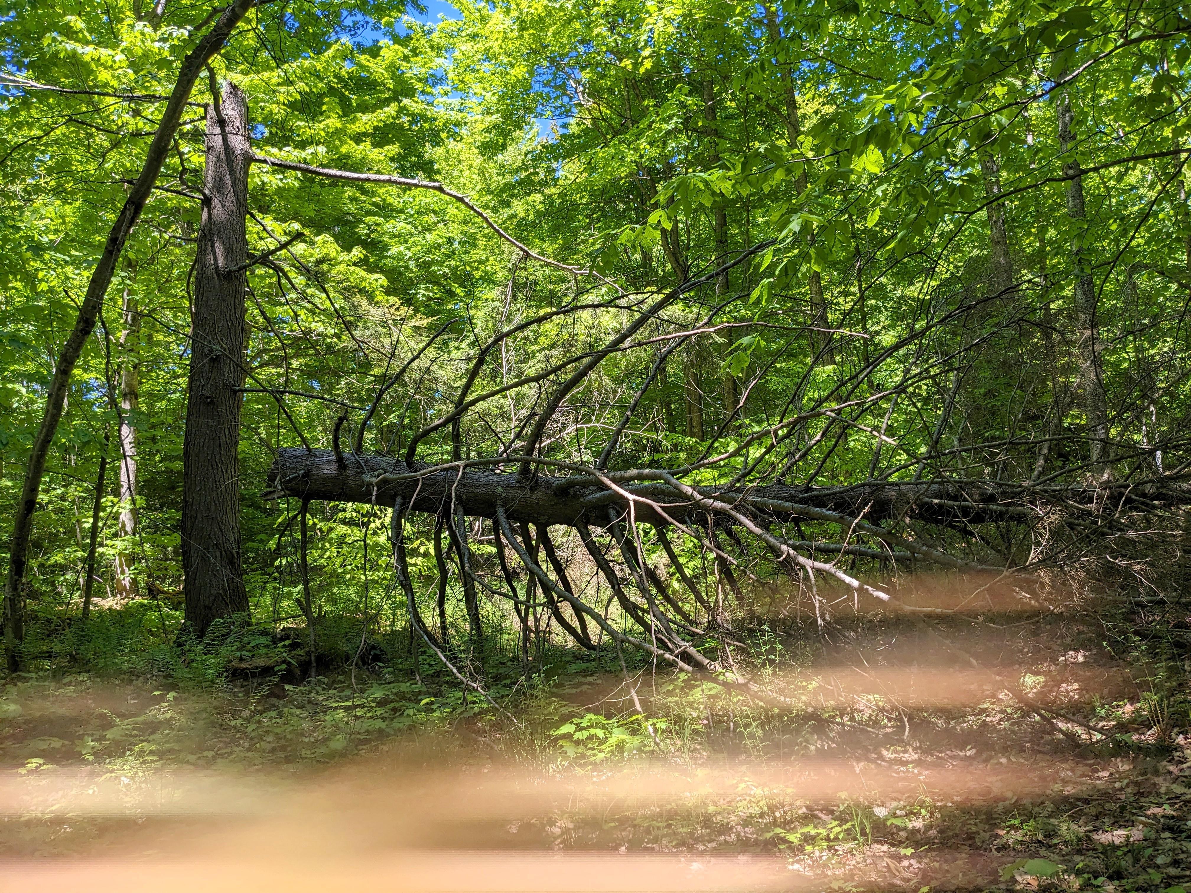 There was another road that had split off south. This was interesting because there is a parcel of land in the midst of the Lake Superior State Forest that appears to be owned by the lumber company, but is not under the conservation easement. The road partially went through this parcel. Unfortunately it was not that exciting, I did not find anything of interest. Since I was here, rather than even more back tracking I figured I would try cutting through the woods to Camp Atwood. Not a wise decision.